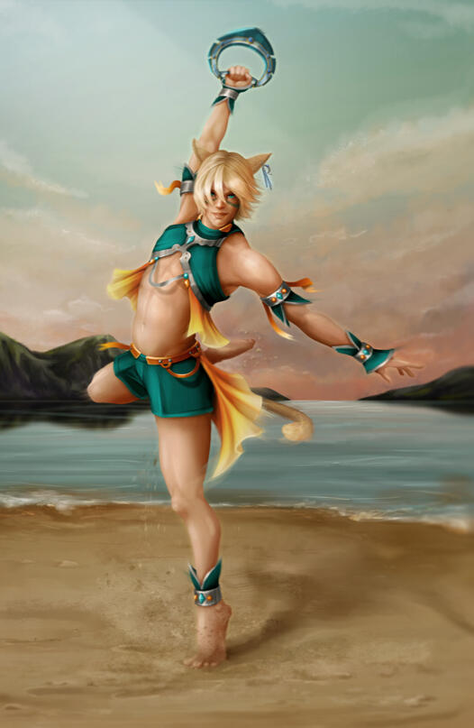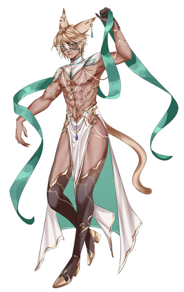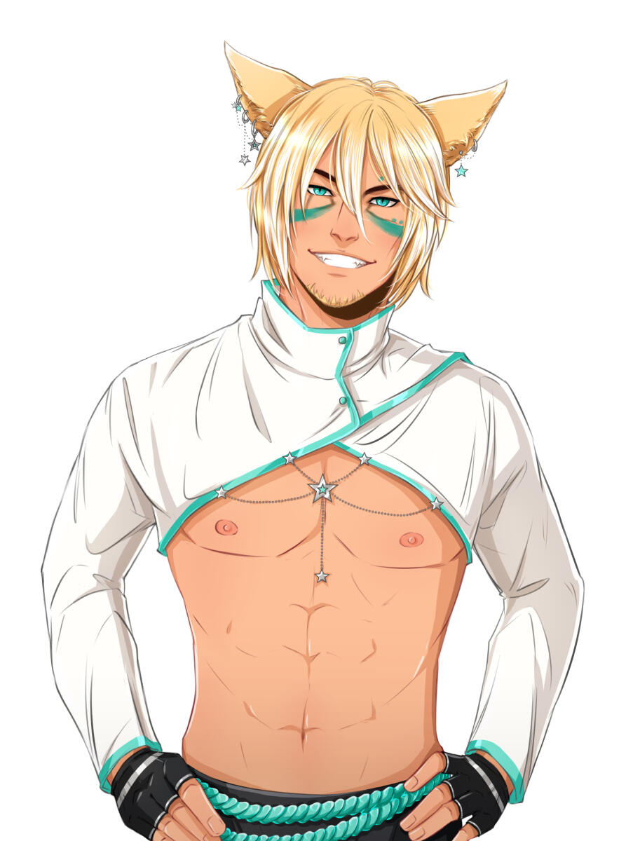 Charismatic and daring, I'sobe views the world as wonders to see and a stage to perform on.Filled with tales of travel and wonder from his father, and lacking, some would say, any sense of responsibility, I'sobe ran away from home to see the world. He found himself in a caravan with a troupe of dancers that seemed to defy gravity, and was enamored. Trained under them in acrobatics, dance, and grace, he styled himself I'sobe Tia and made a name for himself in Ul'dah.Dressed in style to draw the gaze of others, often bedecked in jewels loaned from the Goldsmith's Guild, he performs for Syndicate soirees, above the streets of the city, for festivals and clients abroad.A flirt and a daredevil, he's always up for meeting new friends and trying to things or visiting new places, and recently has discovered the origins of his dance lineage lie in incomplete monk techniques from the time of the fall of the temple of the Fist of Rhalgr.